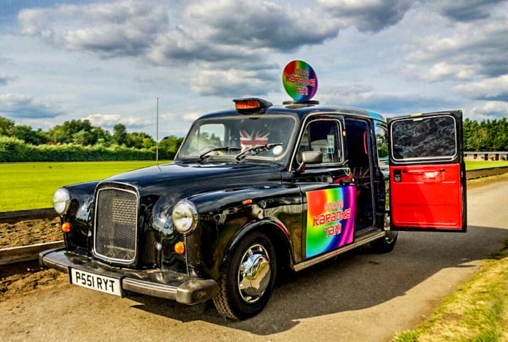The Taxi combines the iconic design of a London black cab with a fully equipped karaoke system.